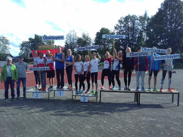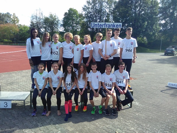 Beim Vergleichskampf der sieben Bayerischen Bezirke holte die Unterfränkische Mannschaft nach einer Durststrecke in den letzten Jahren den 3. Platz. Bei dem Mannschaftswettkampf der 14-jährigen Jungs und Mädels starteten für jeden Bezirk zwei Teilnehmer in einer Disziplin. Der Erstplatzierte pro Disziplin erhält 14 Punkte, der Zweite 13 Punkte usw. Als diesjähriger Ausrichter des Berzirkevergleichskampfes wollte man sich besser präsentieren als in den vergangenen Jahren. Das Organisationsteam des Bayerischen Untermains legte durch die reibungslose Durchführung des Wettkampfes in Hösbach die Voraussetzungen für den hochkarätigen Wettkampf. Am Vortag des Wettkampfes wir traditionelle ein Rahmenprogramm geboten. Mit der Filmvorführung „I am Bolt“ bekamen die Sportler Einblicke in das Leben von Superstar Usain Bolt, der bei den diesjährigen Weltmeisterschaften in London seine Karriere beendete. Im Anschluss übernachten die angereisten Teams in der Turnhalle. Am Morgen begann der Wettkampf mit dem Einmarsch der Mannschaften. Trotz Schlafdefizit zeigte der unterfränkische Leichtathletiknachwuchs von Beginn an starke Leistungen. Der Heimvorteil konnte genutzt werden und trotz Sommerferien noch zahlreiche Bestleistungen aufgestellt werden. Am Ende war der Jubel über den 3. Rang in der Gesamtwertung riesig. Die Mädels holten sich gar den Vizetitel hinter dem Abonnement-Sieger Oberbayern und sammelten 141,5 Punkten. Die Jungs steuerten 128,5 Punkte bei und landeten auf dem 4. Platz.